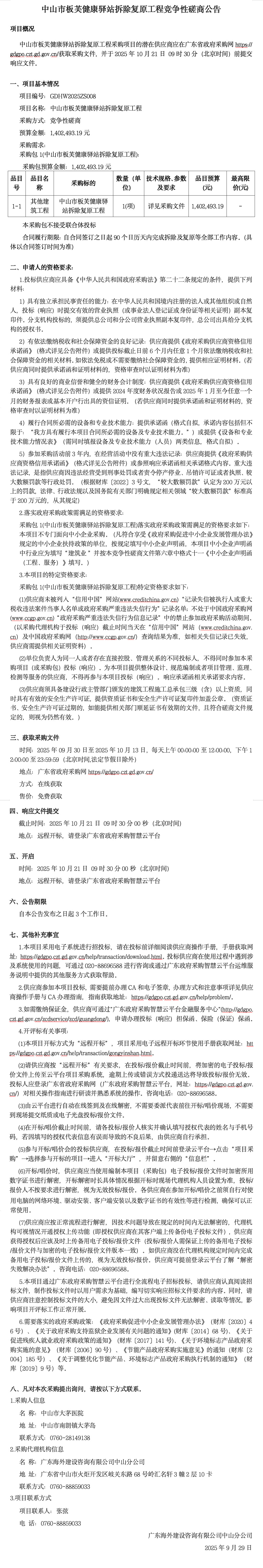 中山市板芙健康驿站拆除复原工程竞争性磋商公告